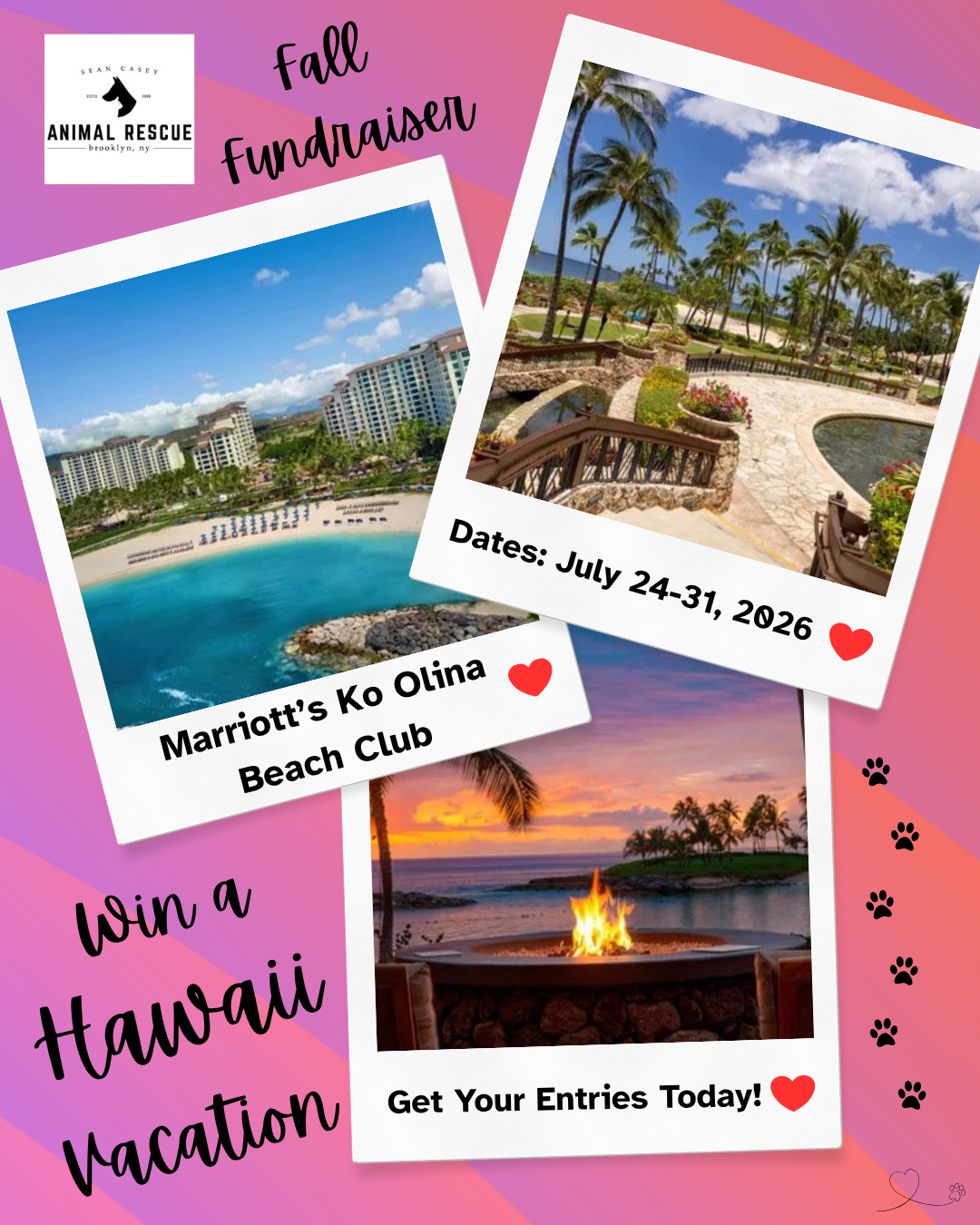 Yoiu Could Win a Vacation to Hawaii! Curious? Come take a look! https://scar.rallyup.com/fall2025And if you have any questions please get in touch! Email maria.bowen@nyanimalrescue.org Theresa LabiancaOctober 2, 2025 Facebook0 Twitter Pinterest0 0 Likes